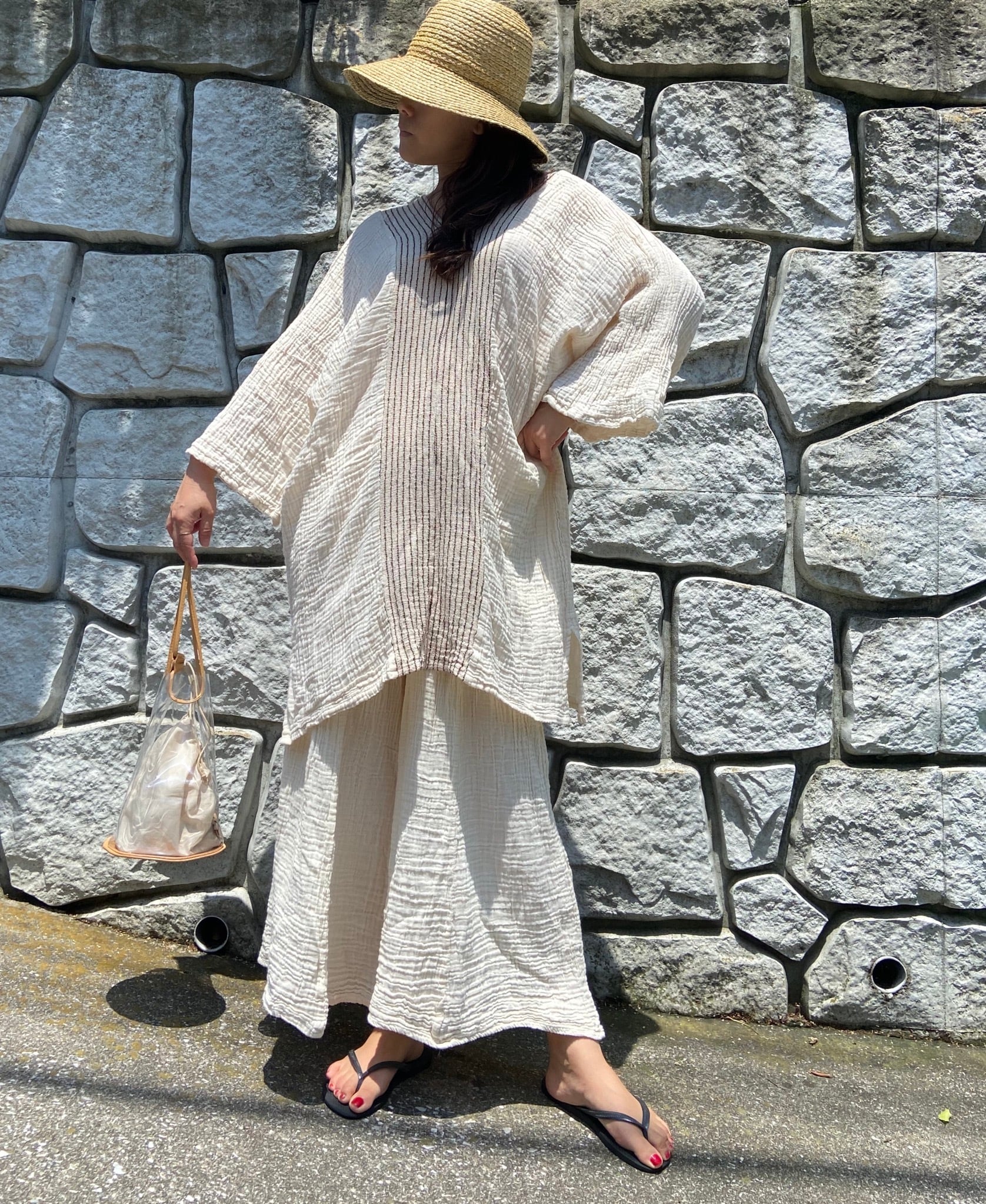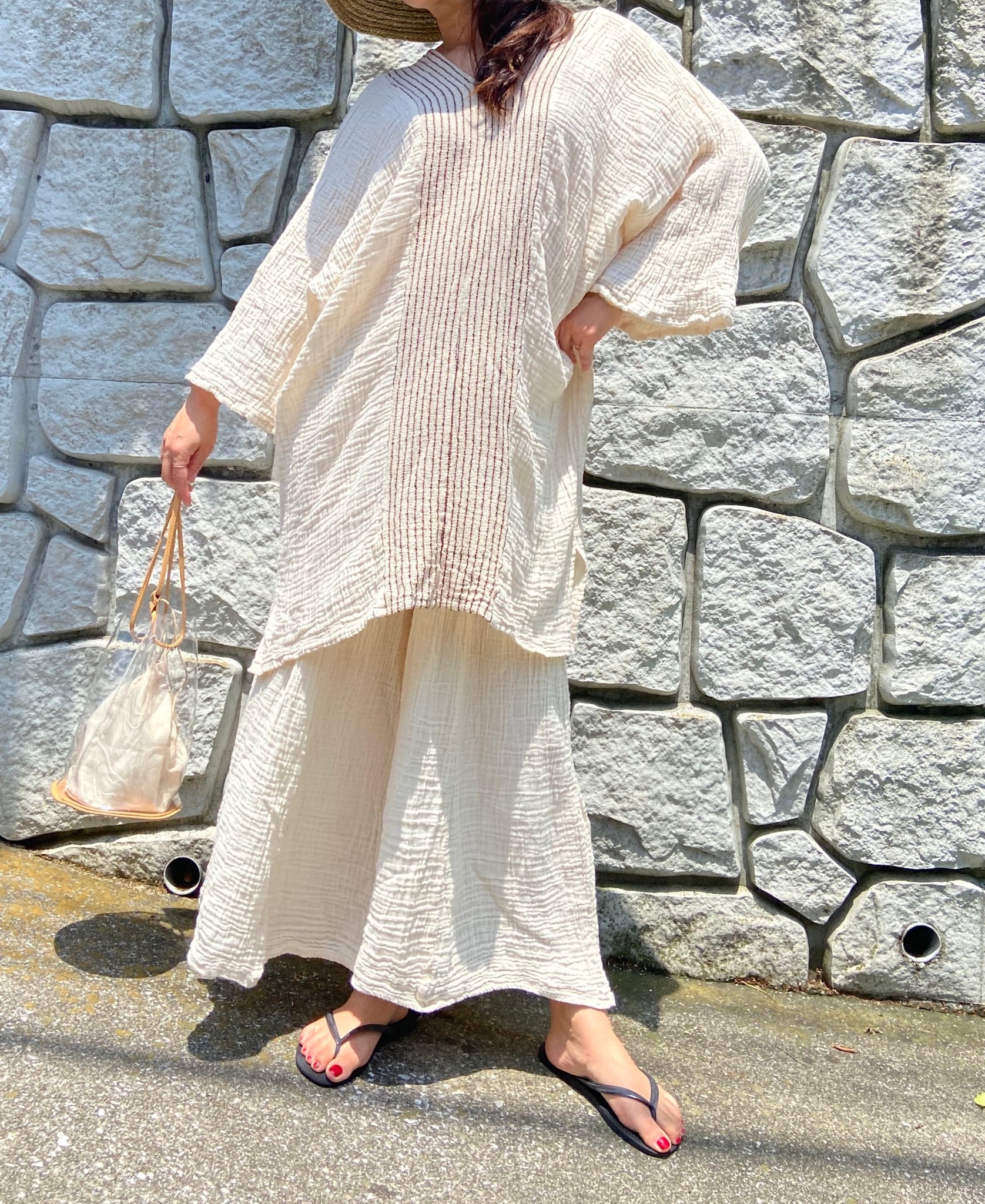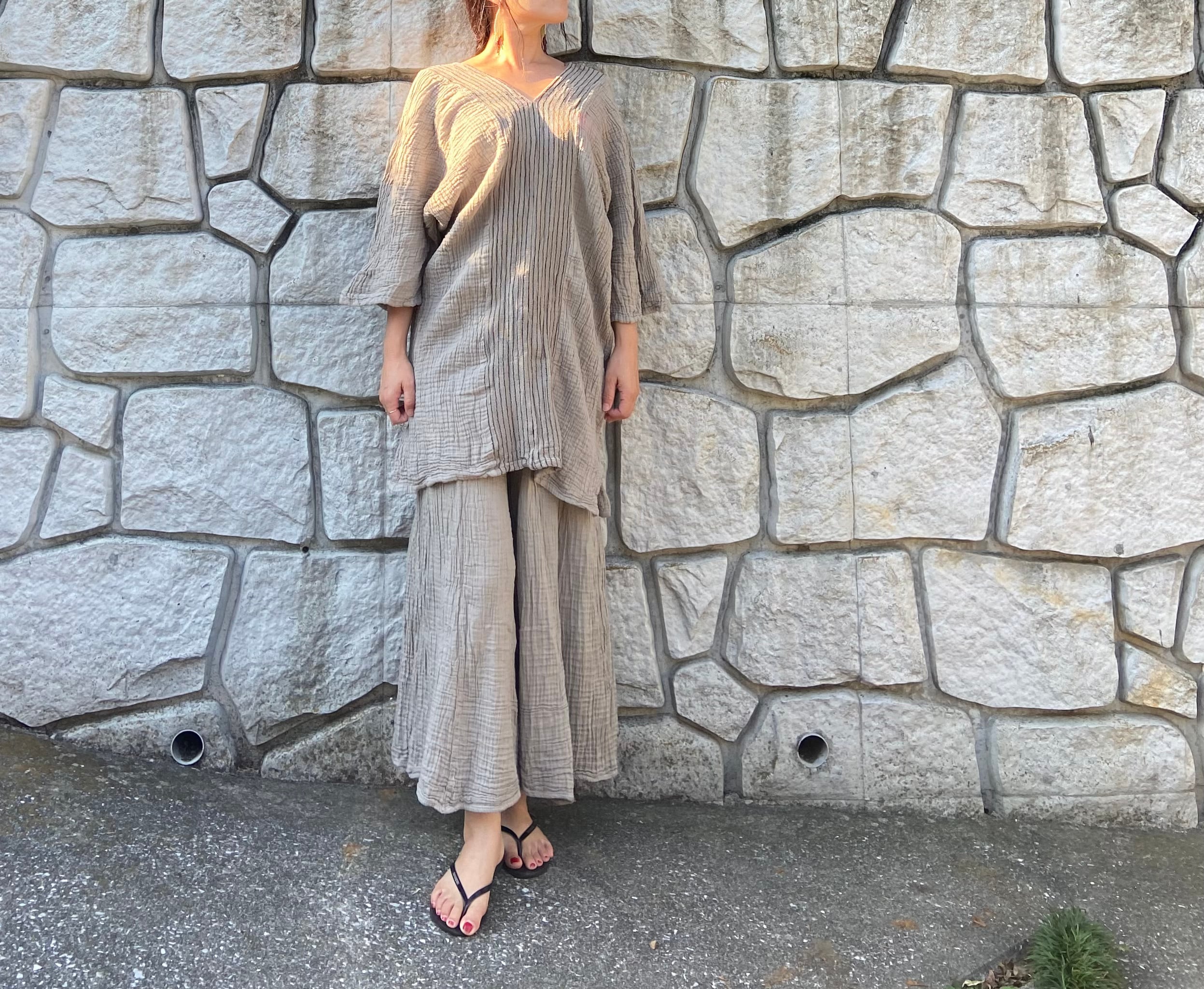 再入荷!!!ダブルガーゼ Vネックチュニック