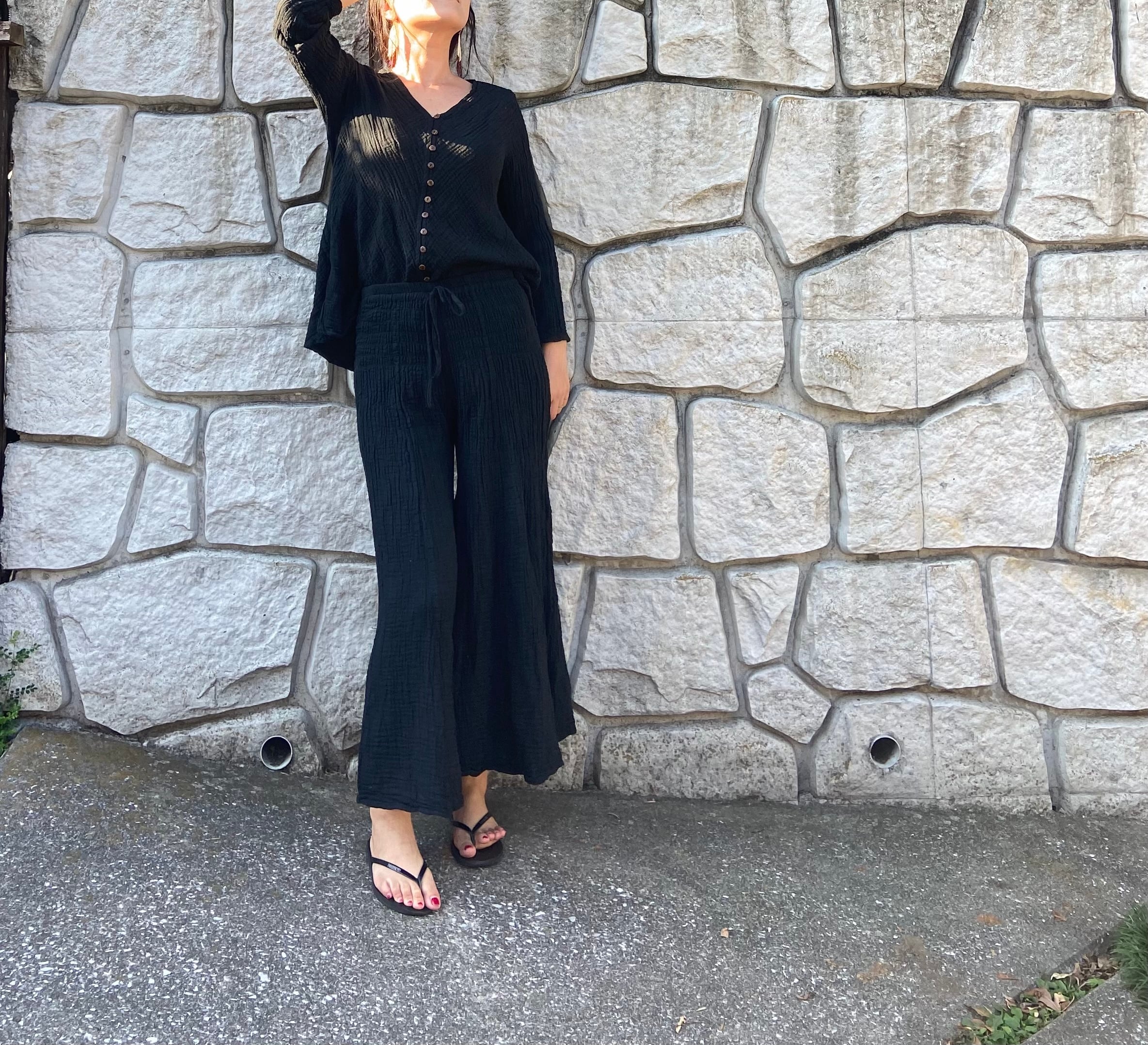 ダブルガーゼ素材で肌触りが最高に気持ちよく夏はサラサラ、他の季節までも利用頻度は高いアイテム。