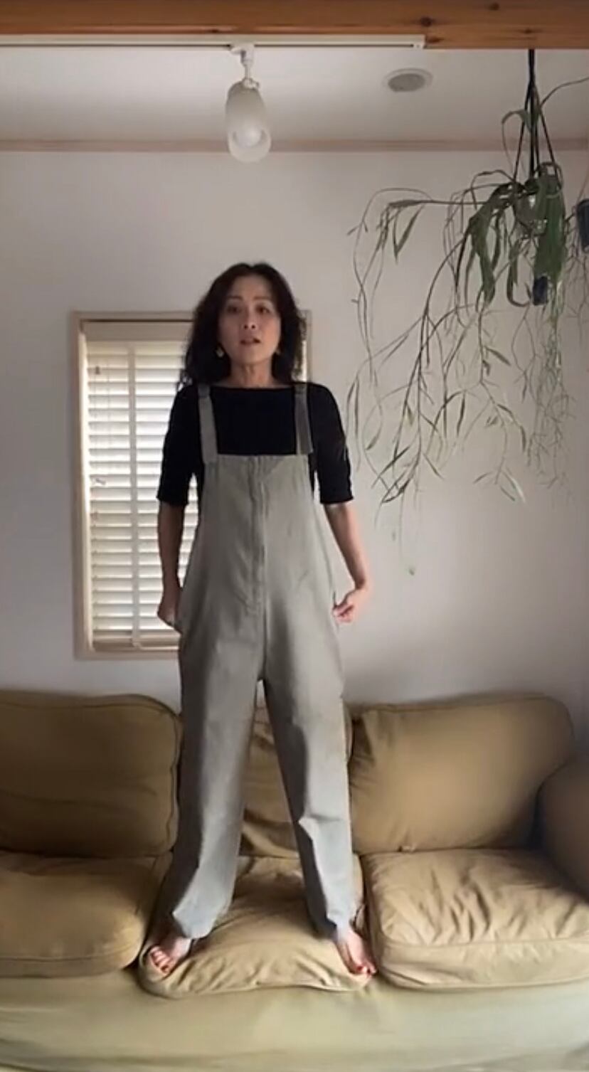 肌寒い季節には、ざっくりカーディガンを合わせたりアウターを合わせたりと、ロングシーズン活躍してくれるサロペットです。