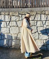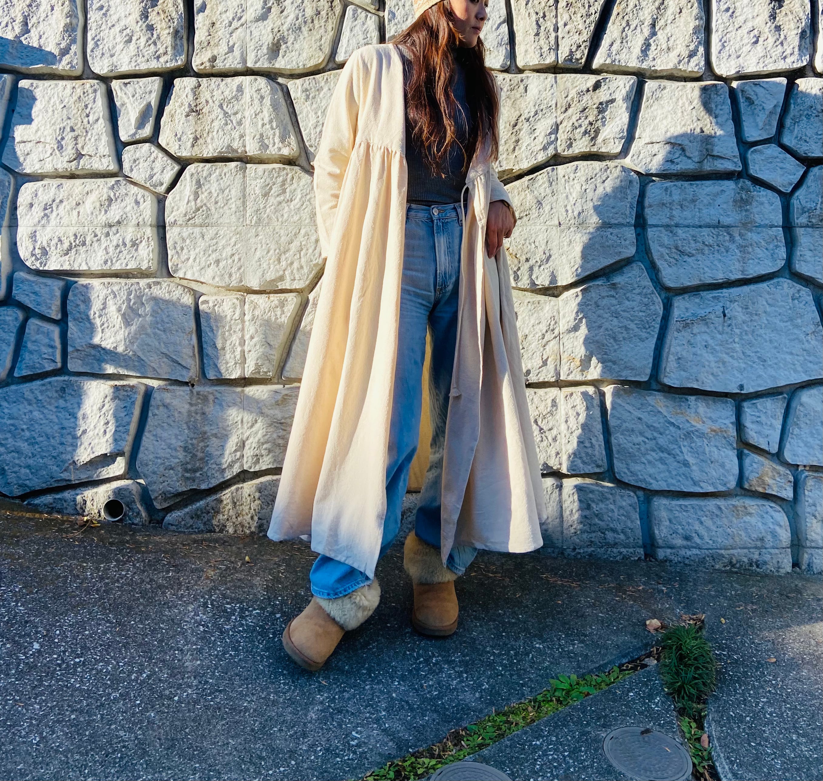 冬でも厚手コットン、生成り生地なので暖かく着れます。 冬に白、オシャレです!