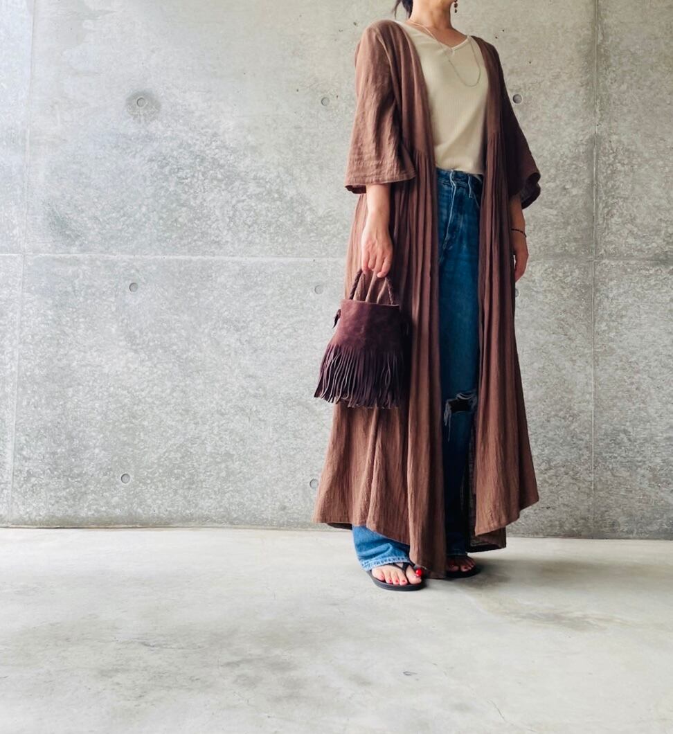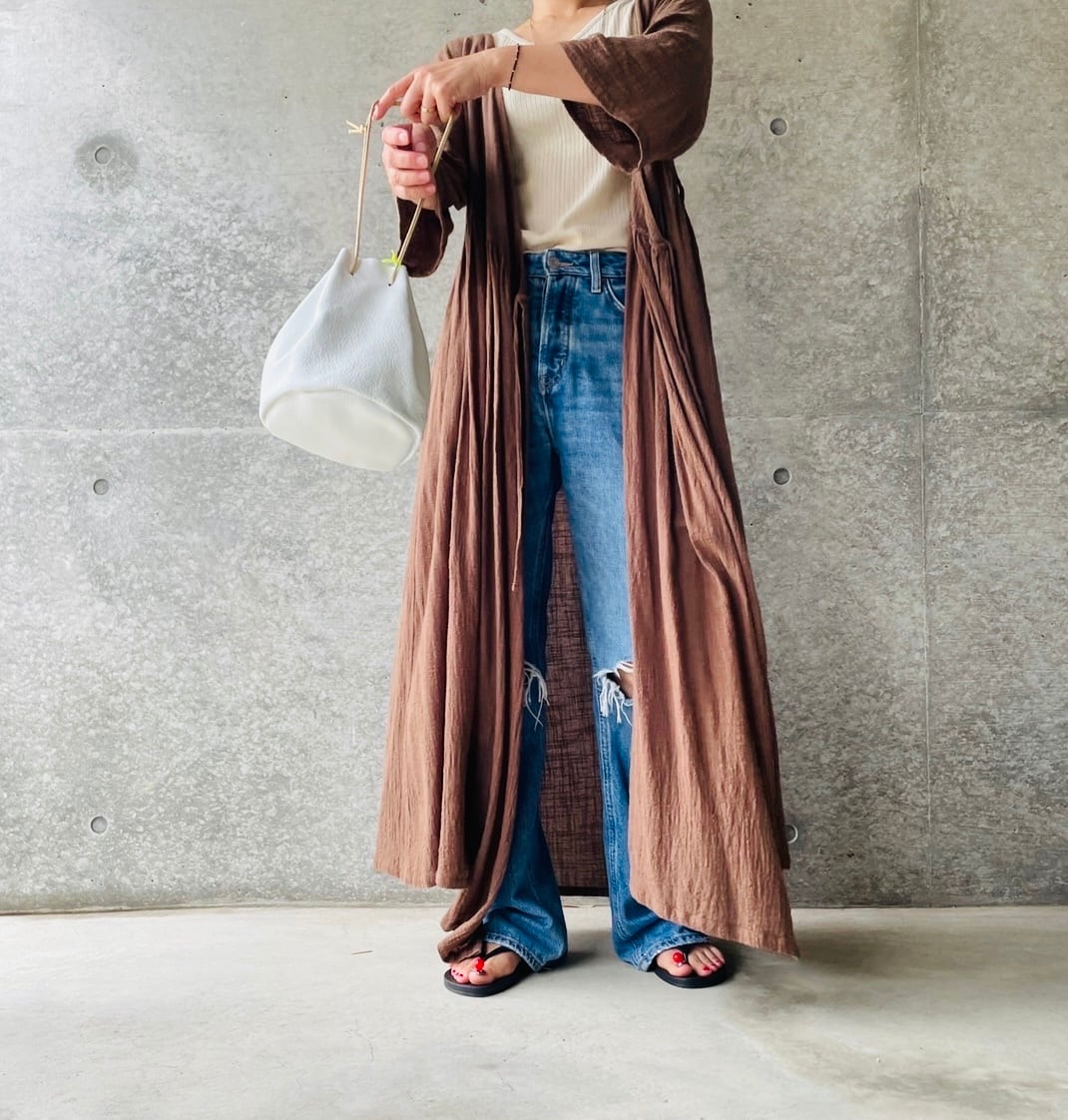 ワンピースとして、前を開けてガウン風に2wayでスタイリングできます。
