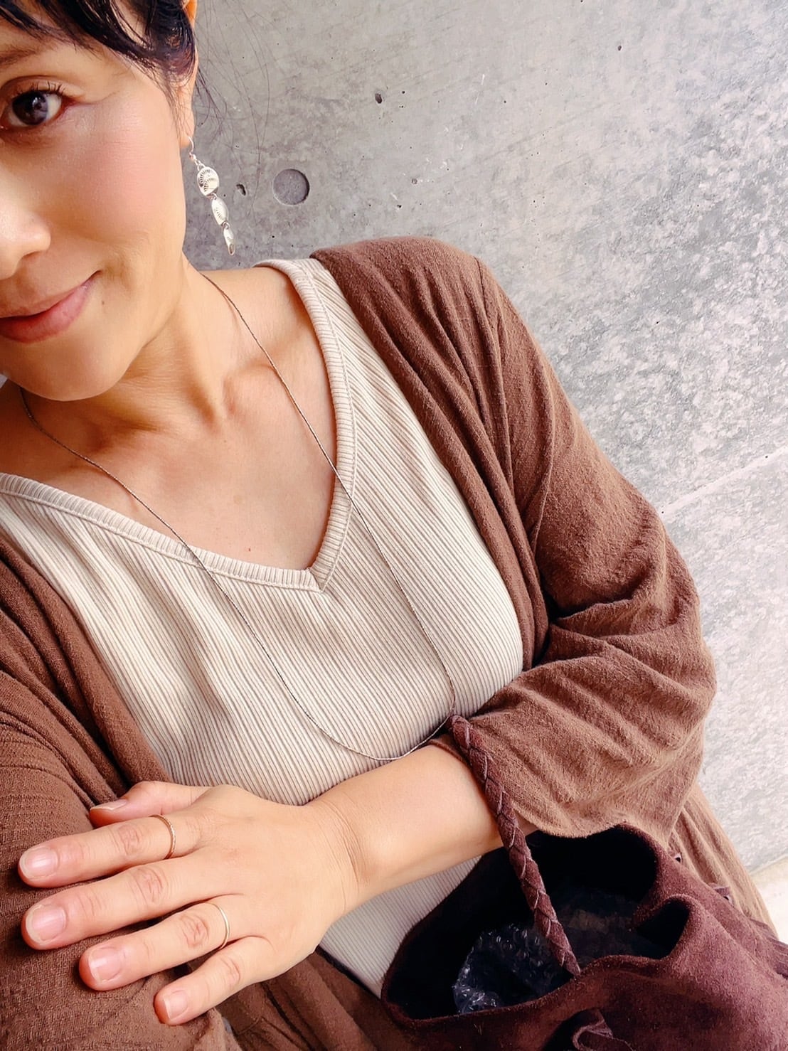 胸元はあいているので中にタンクトップ、秋はタートルネックなどインナーも楽しめます。