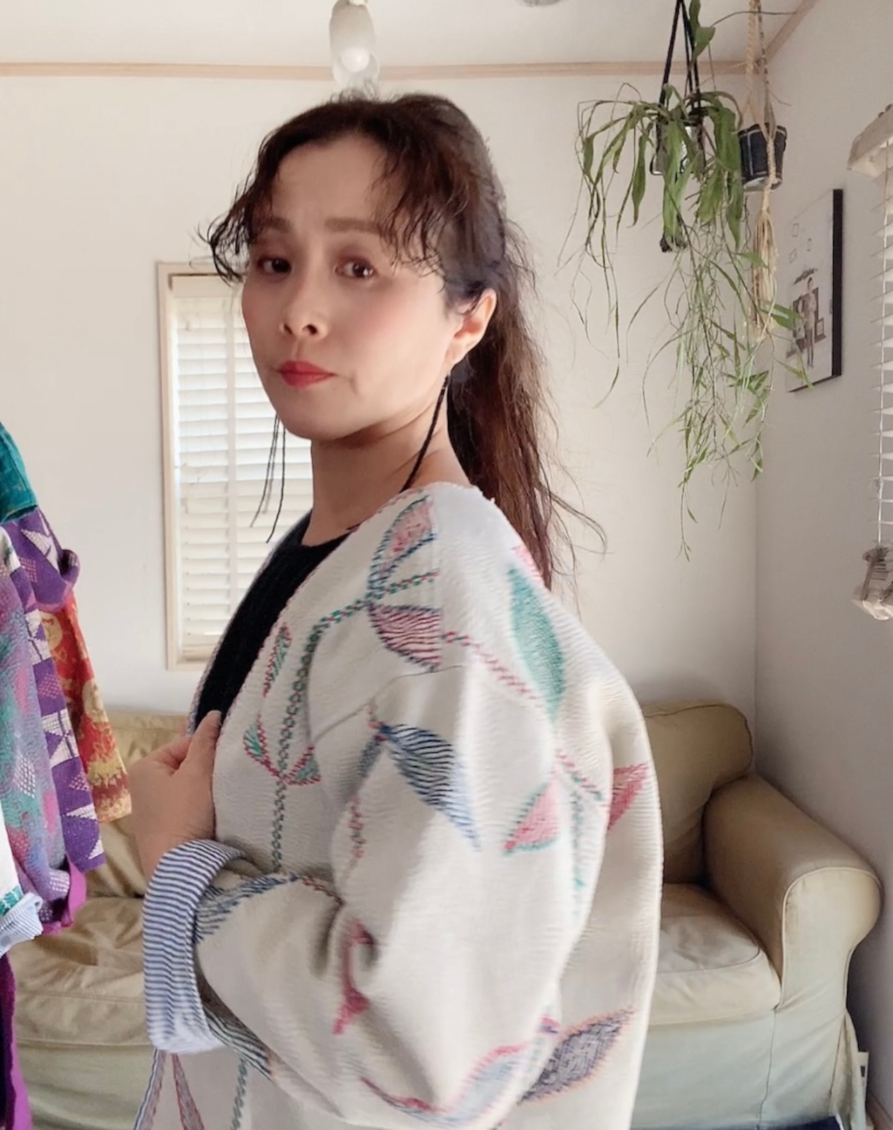 赤ちゃんのおくるみ、敷物にしたり生活に必要なものに再生し、サステナブルな布である。