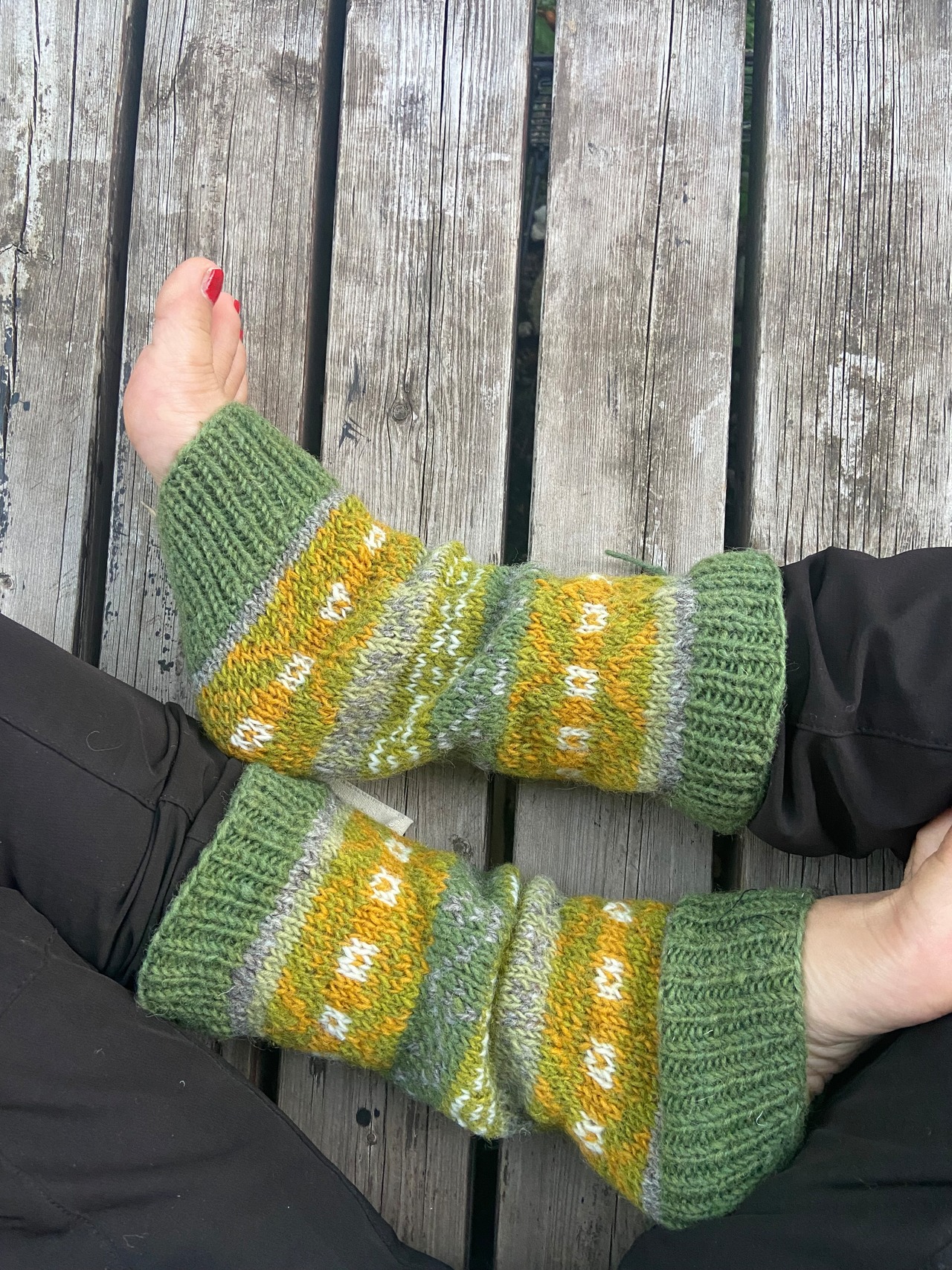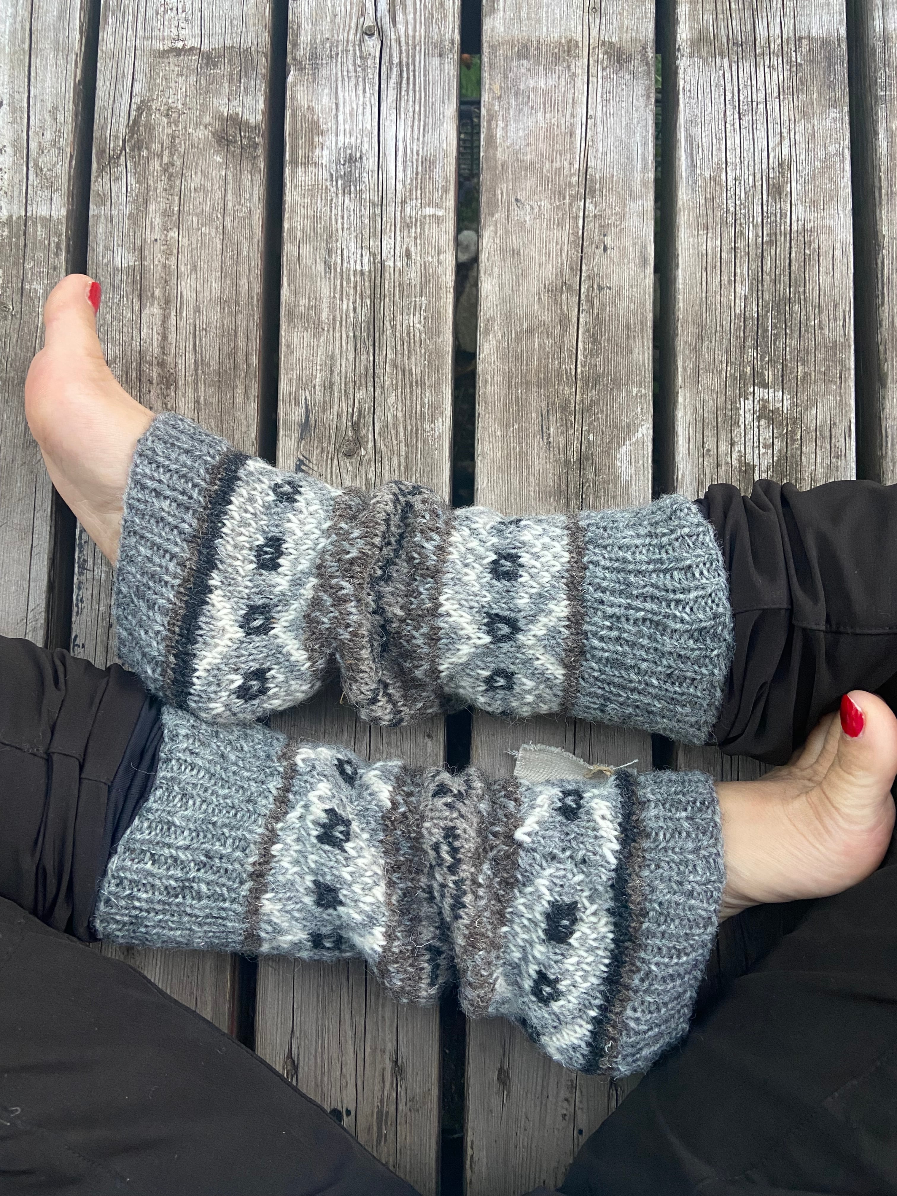 足元を可愛く演出するレッグウォーマー。ネパールからの贈り物で、日本人女性のニットデザイナーが糸を選び染めて作り上げました。ウール100%で暖かさもバツグンです。長さは膝下ふくらはぎくらいまでの丈です。